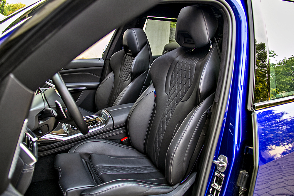 这台M60i前排选装了一体式运动座椅,费用并不贵,一万元出点头,但是座椅的卖相和功能非常丰富,首先座椅支持各种调节,腿托、侧翼、肩部,而且加热、通风、按摩都有。