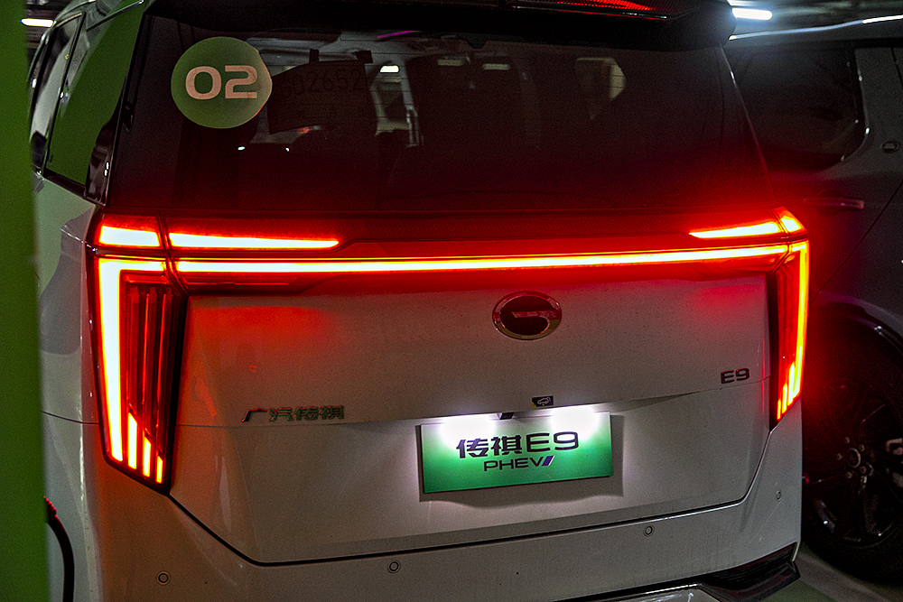 一台MPV最不好处理的地方就是尾部,因为都是方正的造型,但是E9这里可以看到细节上光影交错,让车尾的层次感更强。贯穿式尾灯,内部有320颗灯珠,与大灯相同,灯光秀足够惊艳。