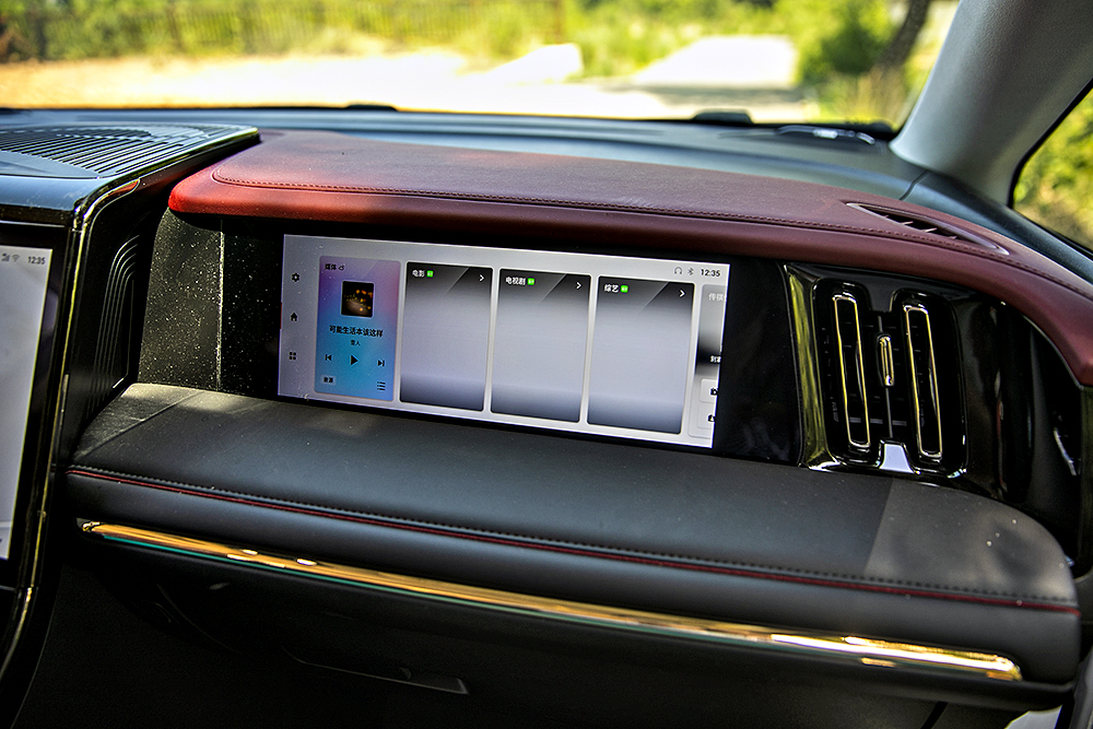 M8副驾驶前是一个面板,而E9这里则是一个12.3英寸娱乐屏,在这里可通过在线服务的方式,体验影音娱乐功能;通过蓝牙功能,还可实现“唱吧”体验。