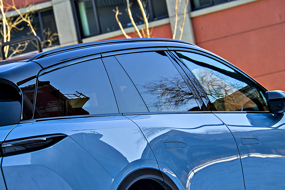 我还是非常喜欢ES6的侧面线条,看着非常流畅没有臃肿感,而且上扬的车窗线与稍有溜背的车顶,让侧面视觉也很动感。此外,“纯平侧窗”不仅让侧面整体感更强,而且还通过将密封条隐藏在玻璃内侧的方式,增加豪华氛围。