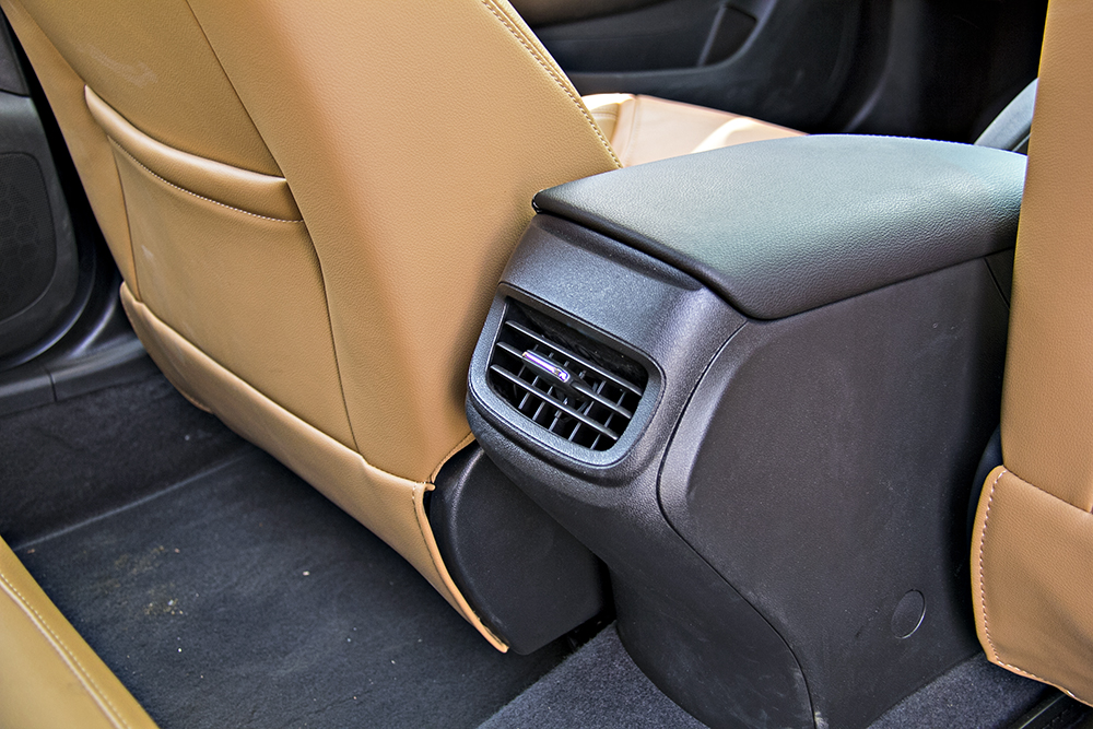 相比于前排后排的舒适配置就有些少了,首先后排中央位置没有扶手以及头枕,另外因为扶手的缺失,所以后排乘客没办法放置类似一次性水杯,只能在后车门放水瓶了。后排提供了独立的空调出风口但是很可惜没有配置USB接口。行李箱储物空间较好,但是因为没有隔物帘所以会对行李箱的物品私密性保护不好,后期车主们自行购买一个安装没有难度。