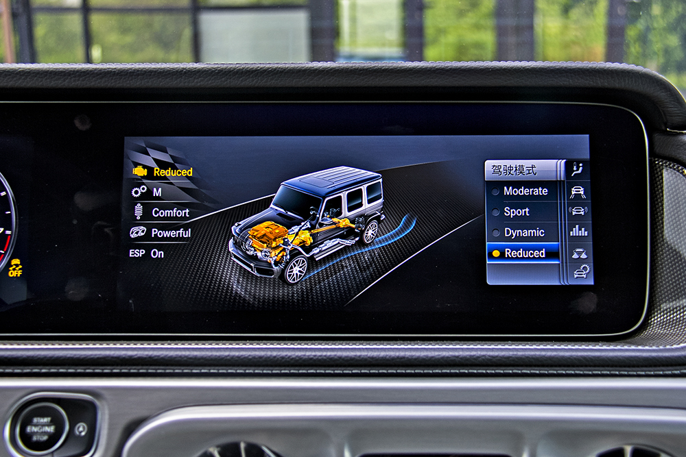 另外,AMG G 63越野性能也依然保持着强悍的实力,G 500所有的越野功能在G 63上一应俱全,低速挡也同样使用了2.93的大速比,而且,G 500的G-Mode模式中,AMG还有专属的三种细分工况可供选择。