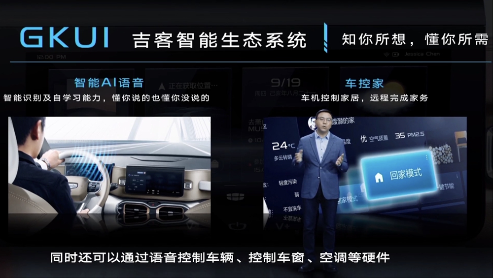 在服务方面,GKUI智能网联系统可以提供出行服务、构建“人+车+家“出行生态,并可OTA自动升级。全方位车家互联服务,打通了京东、百度、小米智能家居生态系统,连接车机云端即可实现智能家居控制。