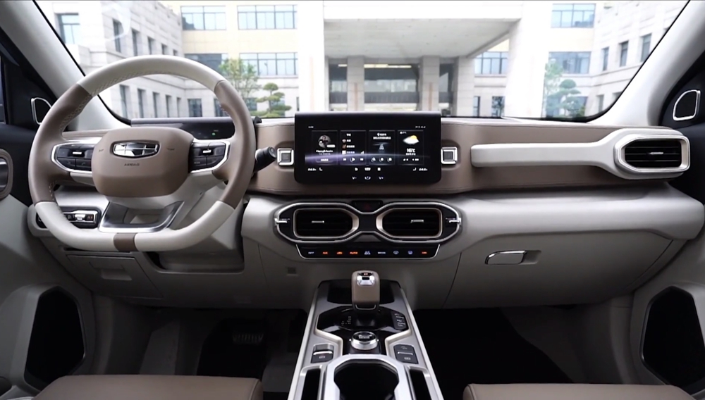 为了进一步迎合年轻消费者对科技配置的需求,吉利ICON还搭载了GKUI智能网联系统,可实现对话级别的AI语音交互。中控台上的两块10.25英寸全彩液晶显示屏,可通过“三指飞屏”实现双屏实时交互。