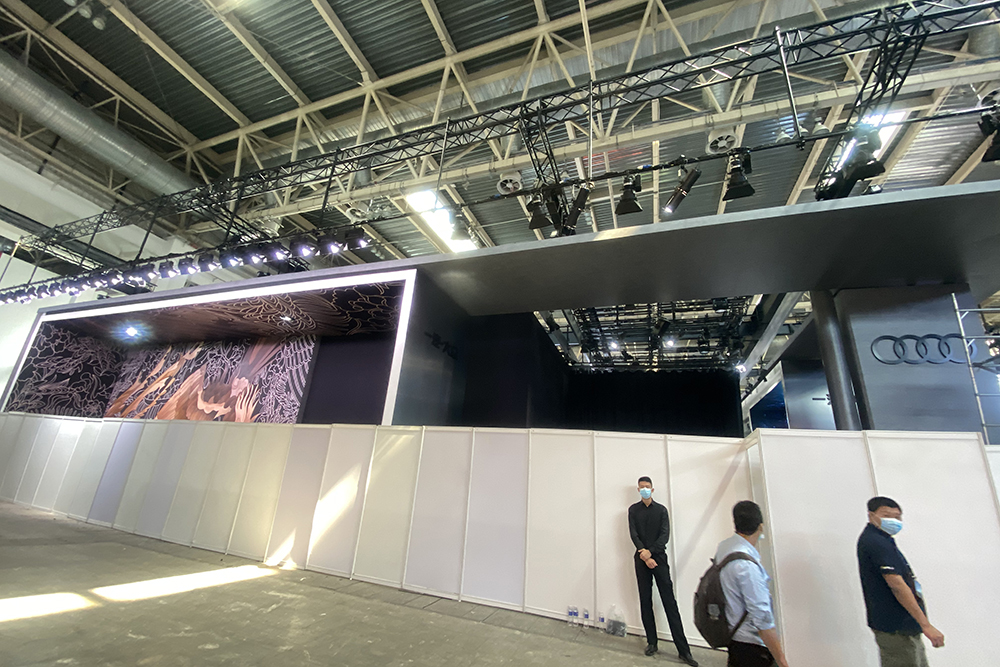 因为已经临近媒体日开幕,所以今天展馆内每个站台都已经搭建完毕,而且都树立起巨大的隔离板,每个站台内都进行各种彩排以及试音等,零零散散有些站台还在进行新车的摆放。