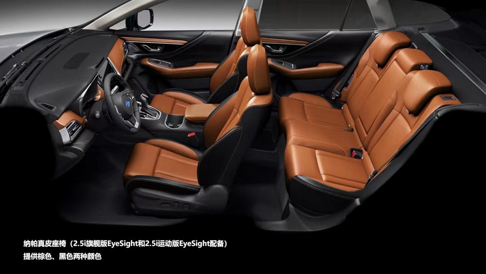 在空间方面,新一代OUTBACK傲虎的前排横向空间及前排座椅间距都有所增加,后排座椅的间距、腿部空间也实现了优化。为了提升品质感和舒适度,2.5i旗舰版EyeSight和2.5i运动版EyeSight首次采用了触感柔软、耐久性更好的纳帕真皮座椅,2.5i探享版EyeSight则采用了专属的防水合成材质,可以贴合不同的使用需求。