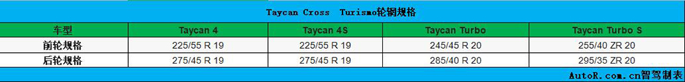 Taycan Cross Turismo全车所使用的电力系统为93.4kWh蓄电池升级版(Performance Battery Plus),全系均为前后双电机布局,具体参数和对比请看下图。