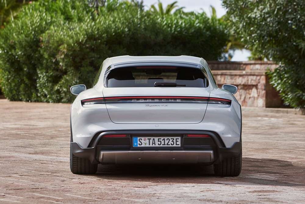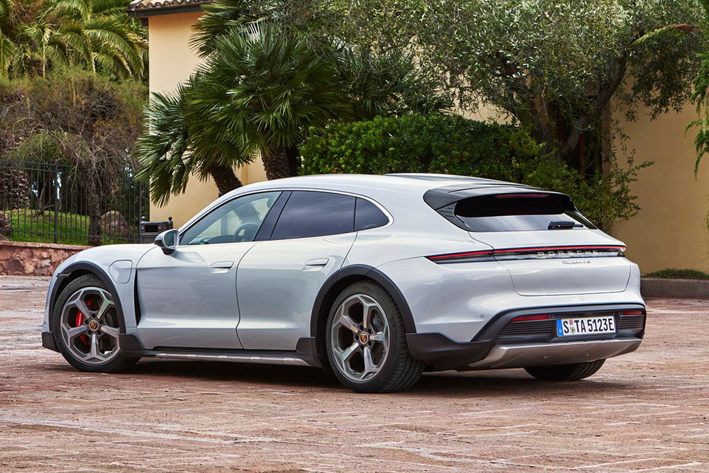 前后包围底部、轮眉、侧裙等配件并不与车身同色,这样设计让Taycan Cross Turismo在野外行驶的时候避免划伤车漆,当然从视觉角度出发,也更加富有“野性”。