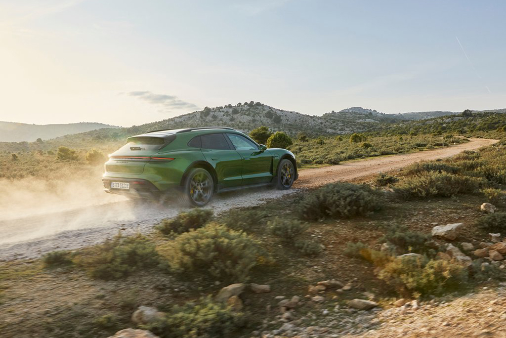 在悬架方面,Taycan Cross Turismo依旧标配了三腔空气弹簧,除了可以提供不同的车身高度之外,还可以在不同速度下对车身高度进行调整,以保证车辆在高速行驶的稳定性。另外,Taycan Cross Turismo还在驾驶模式中增加了“碎石/砾石模式”(Gravel Mode)(此模式下车身高度增长30mm),由此可见,Taycan Cross Turismo还可以进行简单的轻度越野。