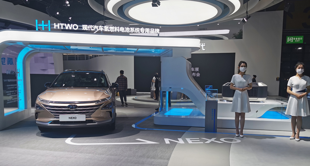 本次车展上,与IONIQ(艾尼氪)品牌相邻的展区即是氢燃料电池专属品牌HTWO。