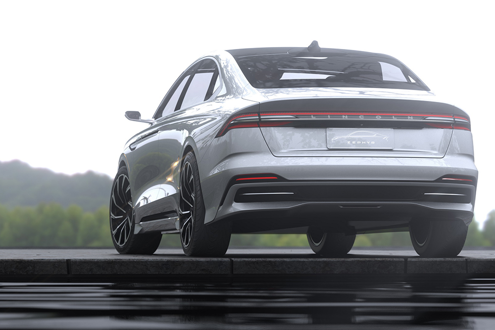 简洁明快的线条勾勒出流线型的车身,车侧腰线由前翼子板一直跃向车尾,溜背造型令Lincoln Zephyr Reflection 量产概念车拥有蓄势待发的轿跑之姿。