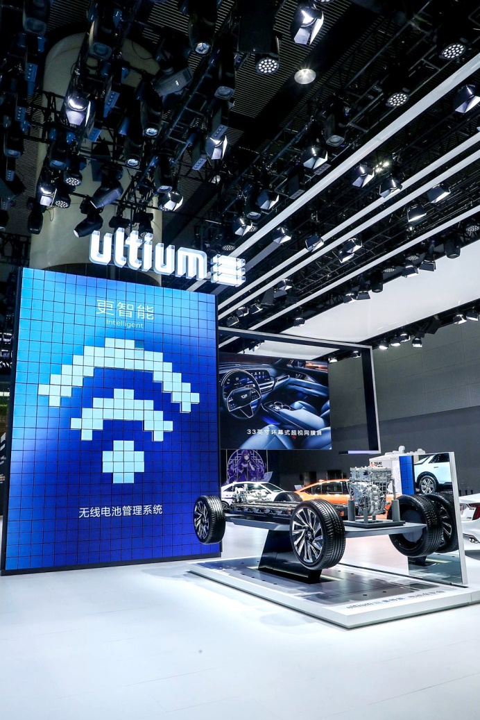 动态艺术展示墙生动解读Ultium奥特能电动车平台的强大实力