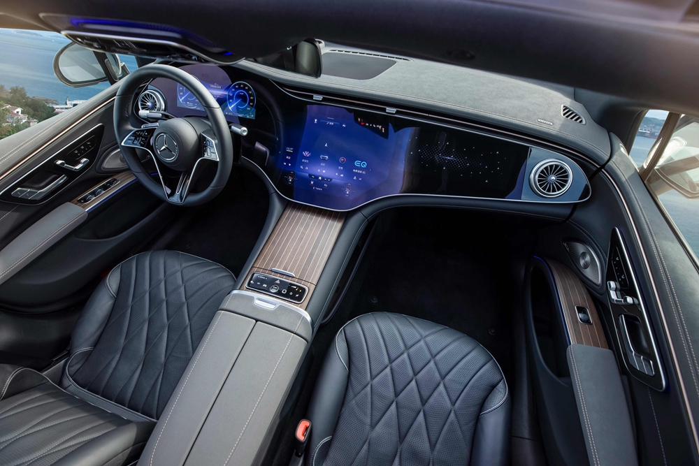 全新EQS拥有5227mm车长与3210mm的轴距,后排腿部空间接近1m。触手可及之处,全新EQS以Nappa皮革座椅、菱格缝线和巴黎钉纹装饰的压力感应按钮等实力诠释豪华氛围。后排座椅可配备舒适组件,包括肩颈加热系统、座椅加热增强功能、热石按摩效果等,营造出S级的舒享水准。