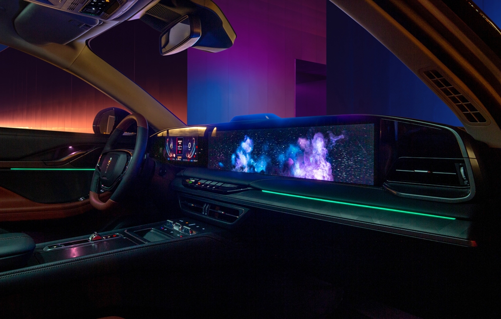 其中,全系标配的12.3英寸+27英寸的超大尺寸贯穿式全景屏,拥有4K级高清分辨率,搭配林肯星云人机交互界面,内容自由切换,实现完整或独立分屏内容显示,使副驾乘客拥有更多参与感,车内的3区128色动态氛围灯还可以实现“无极调色”。