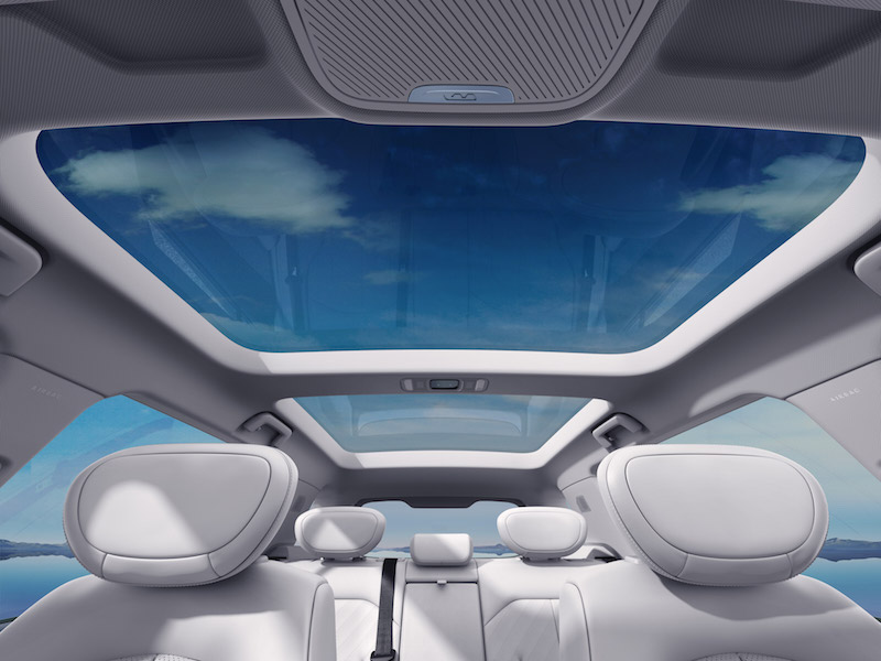 其他值得一提的配置还包括:采用1.71㎡双层镀银隔热玻璃的全景天幕、空调出风口搭载的可读取温度/风量/PM2.5的Mini健康显示屏、双层夹胶静音玻璃、15扬声器音响系统。
