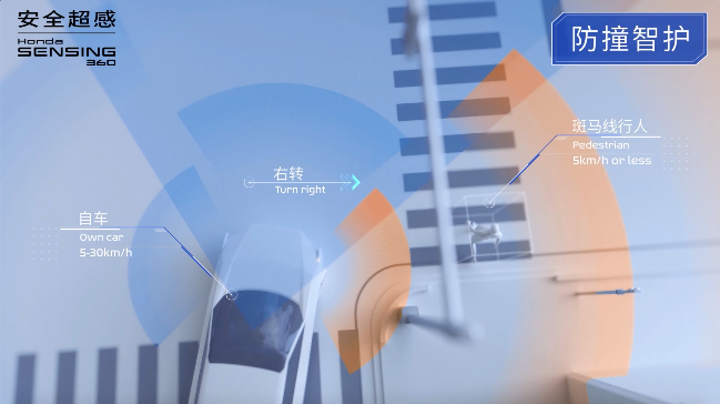 ——防撞智护:进一步扩大了监测范围,加强交叉路口对行人的守护。通过侧角雷达,感知从侧方接近的行人,前视感应摄像头追踪行人,有碰撞风险的情况下,自动实施制动。此外,还可监测对向来车和横向来车,进一步降低交叉路口碰撞风险。