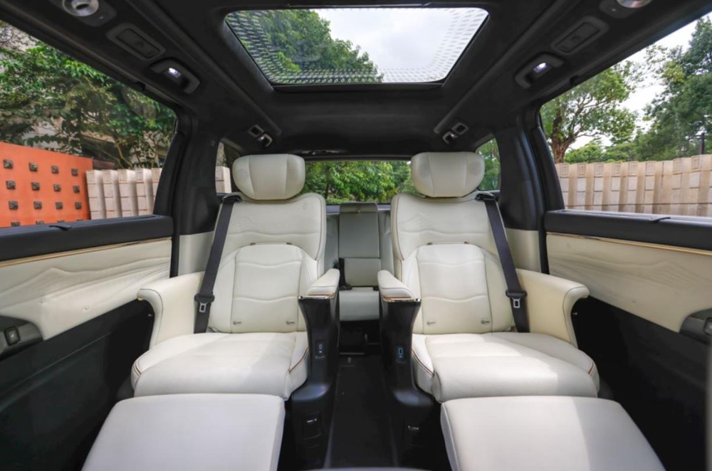 在第二排豪华航空座椅处,480mm超大行程的电动长滑轨,带迎宾功能,较现款M8手动360mm提升120mm。十点式气泵按摩&三种按摩模式也更加舒适,其中两种模式由双点接触提升到四点接触,较现款M8感知更明显。