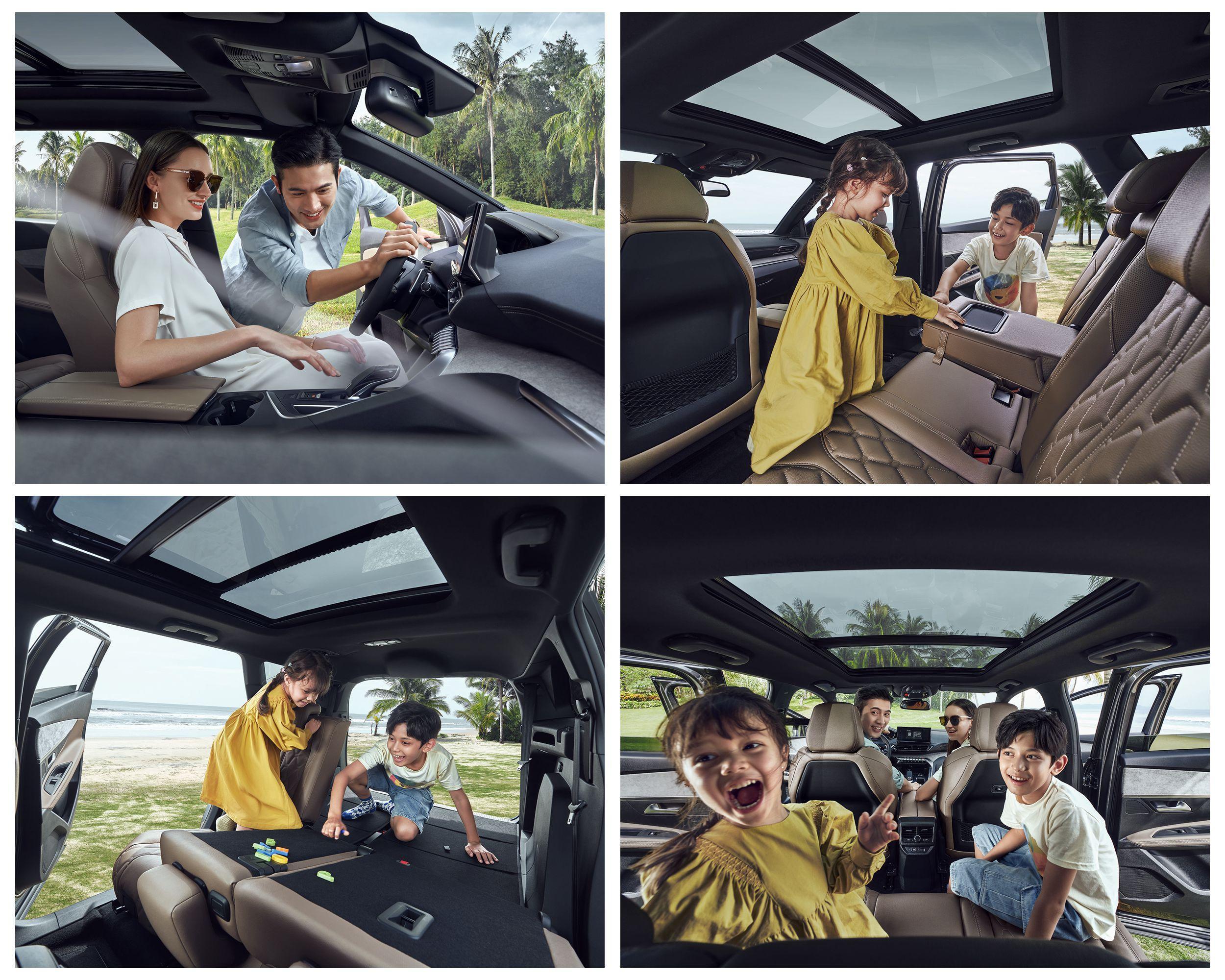 新5008成为你驰骋公路的移动客厅,带着家人们一块出游,共享家庭之乐。作为新法式旗舰,新5008有着2840mm超大轴距,可以为家人们带来阔绰乘坐体验。前排副驾座椅的一键式老板按键,可以为第二排腾出更大空间,令你伸直腿,坐的更放松。可以前后移动的第二排座椅,往后调可以获得更大二排空间,往前调能为第三排营造更大乘坐空间。可拆卸的第三排座椅更有其他妙用,在全家郊游时,可以用来临时乘坐。陪着爸爸钓鱼时,第三排座椅还可以用来充当户外多功能椅。