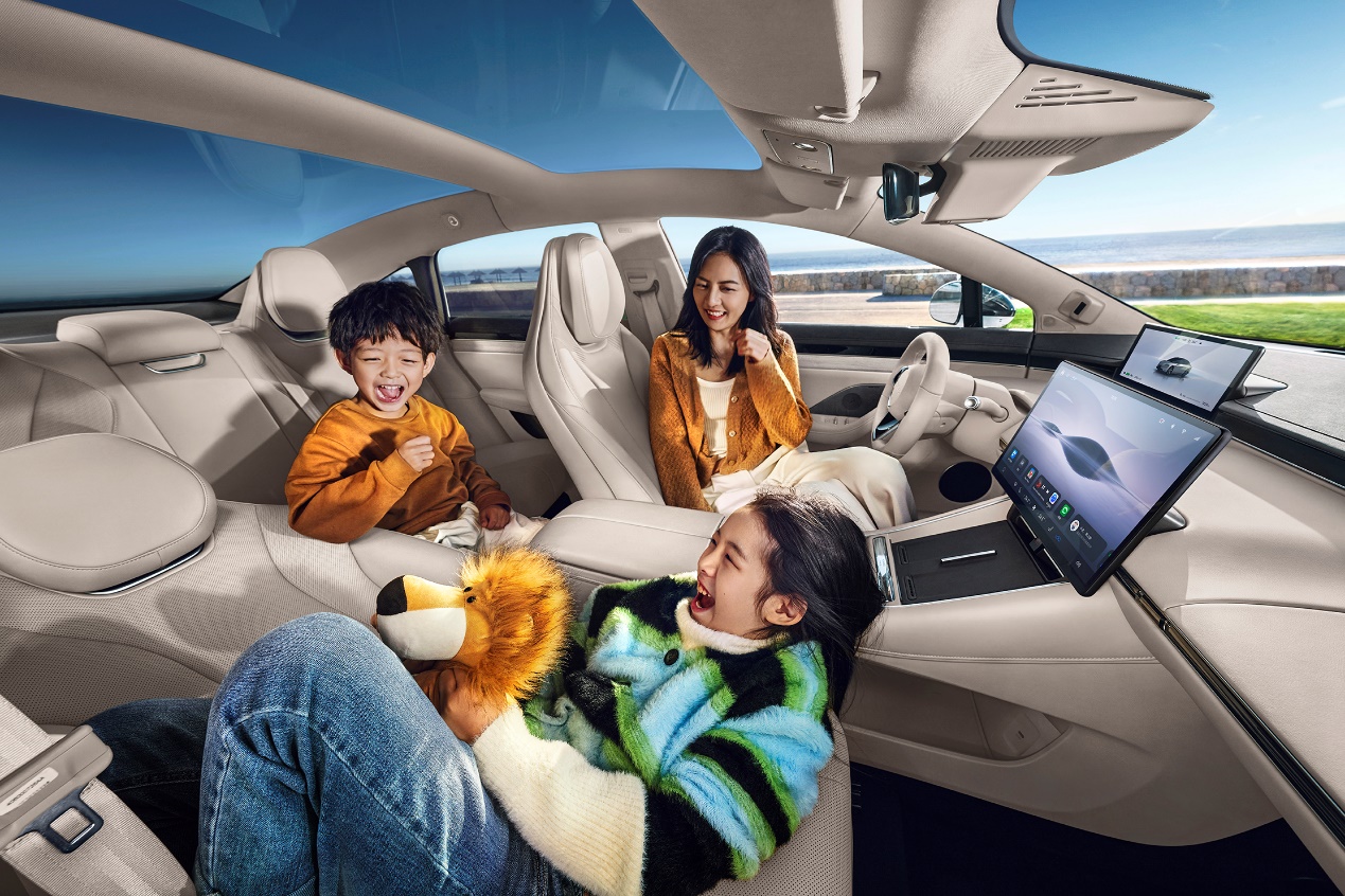 智界S7还配备了HUAWEI MagLink,拥有27W快速充电、超声波位置识别和磁吸童锁防夹手功能,可以轻松为后排增加扩展屏幕。若是二胎家庭,拿上两台华为设备,孩子可以各自观看不同的节目内容,通过精准语音控制,可以调整车内不同区域挂载设备的音量,尽可能做到互不干扰,打造各自专属空间。
