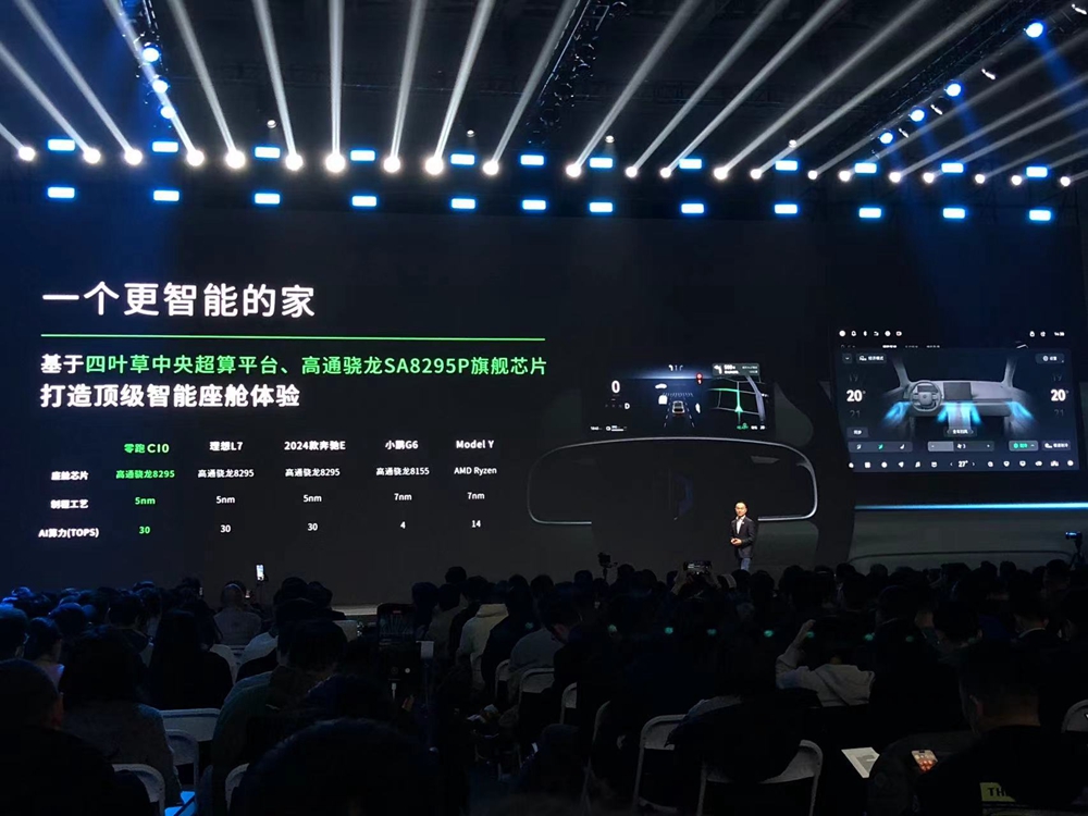 官方数据显示,零跑C10搭载的高通骁龙第四代座舱平台,其8295芯片采用5nm制程工艺,NPU算力达到30TOPS,为当前主流8155P的7.5倍。
