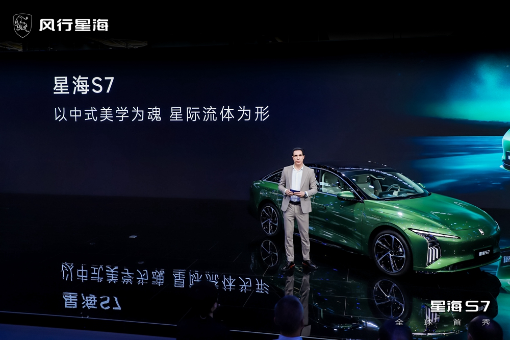 在发布会上,极富设计经验的风行星海外籍造型总监Chris介绍:“星际流体理念源于浩瀚宇宙流淌的绚丽“景观”,设计灵感取其星云曲线的自由与酒脱,与华夏之魂的丝绸之路相融合,让穿越千年的繁华与瑰丽,凝结智慧,化作时间的礼物呈现给用户。”据星海S7产品总监潘晖介绍,星海S7的外观设计不仅从美出发,更为极致的风阻与极致能耗而考虑。