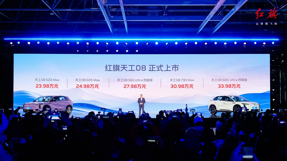 1月7日,红旗天工08在长春一汽研发创新基地正式上市,新车推出两驱和四驱共5个版本车型,售价为23.98-33.98万元。