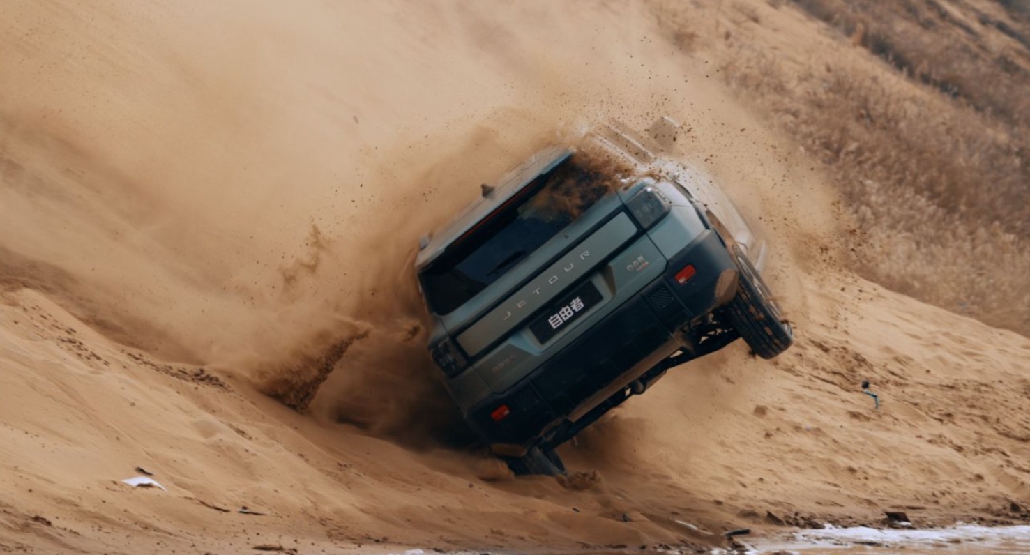 为验证捷途自由者的安全实力,官方在发布会前夕于沙漠腹地进行了安全验证。自由者从长度为40米、坡度为35°的陡坡上连续翻滚至坡底后,验证车辆是否依然能够正常行驶。此外,运输测试车辆的直升机还在高空脱钩,使其在200米高空径直坠落,车身落地承受的冲击力超出任何车辆的安全测试标准,成为了一次极限安全验证。