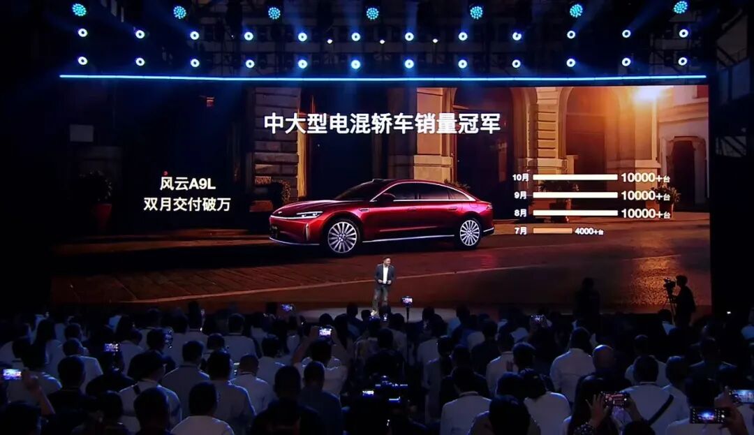 根据奇瑞官方公布的数据,风云A9L自今年7月开始交付,8月、9月就连续两个月稳坐20万级中大型插混轿车的冠军宝座,月交付都超过1万辆。