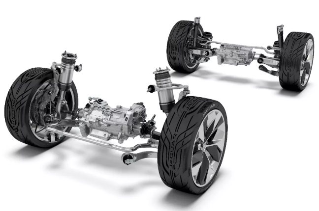 与特斯拉布局相似,捷豹采用两台高效的同步永磁电机和一个减速器同心传动,后轮电机负责车辆驱动,前轮电机则负责电能恢复。