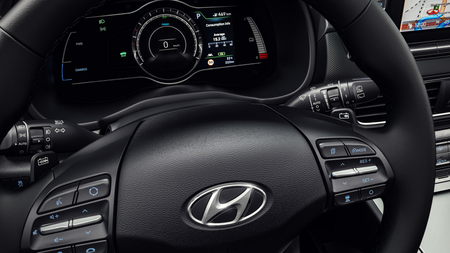 在智联配置方面,现代Kona Electric将配备具备一定程度自动驾驶功能的安全套件,包括:自适应巡航、前方碰撞辅助、车道保持辅助、盲点监测、限速警告等。其智能化巡航控制系统在低速下也可自动刹车和起步,在拥堵路况下可大大缓解驾驶疲劳,实现L1+级别的自动驾驶辅助。