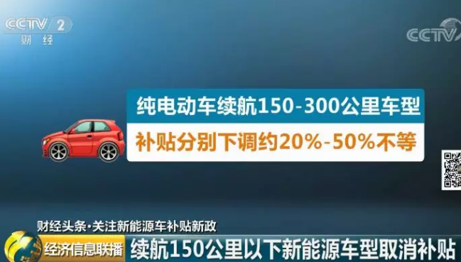 纯电动车续航150-300公里车型补贴分别下调约20%-50%不等; 续航里程300-400公里及400公里以上车型,补贴分别上调2%-14%不等;低于150公里续航的车型将不再享有补贴。