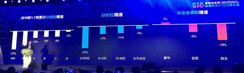 在传统的金九银十即将到来之际,汽车产销连续13个月的销售下滑,今年上半年同比下降12%,这一数过于灰暗。它在告诉这个行业中人, 颓势已延续了一年之久, 对于2019年全年负增长的大趋势所有人都已经认命了。 今天在北京国家会议中心,由中国汽车工业协会主办,汽车之家承办的2019“全球汽车产业创新大会”上,国家信息中心副主任徐长明先生带来了一份比较宏观的报告《汽车市场平台期的企业战略》,在这份报告中,他以详实的数据分析了我国汽车市场28年首次下滑的原因,表现及特点。