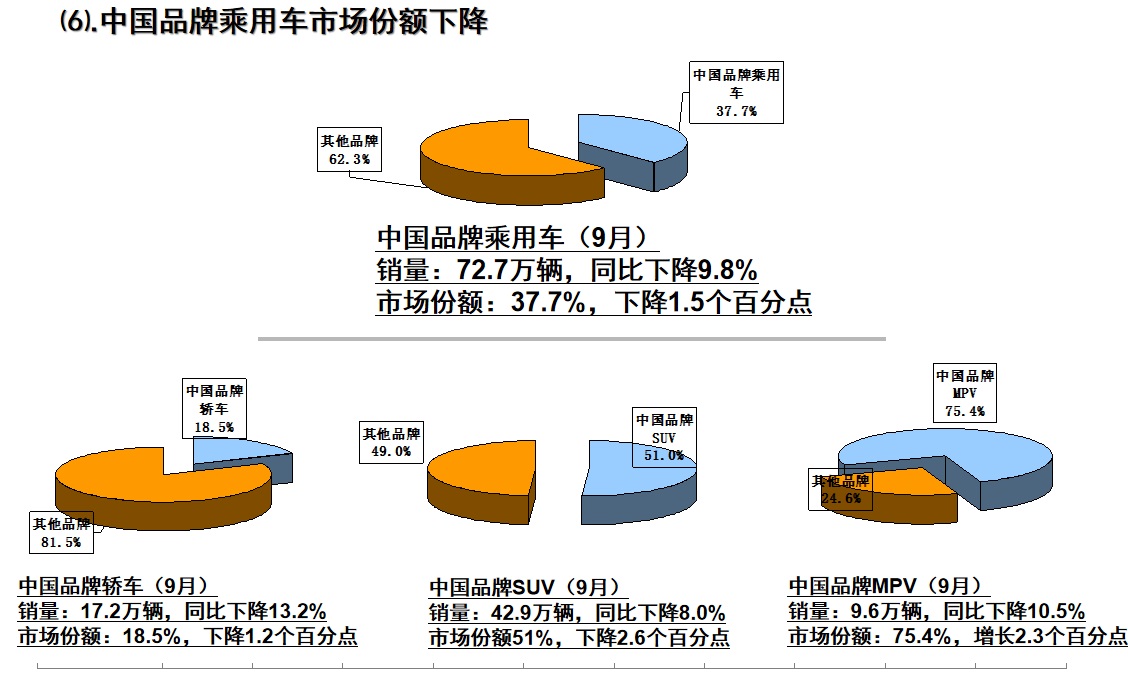 但在一如既往的下跌过程中也有相对乐观的一面,1-9月,汽车产销分别完成1814.9万辆和1837.1万辆,产销量比上年同期分别下降11.4%和10.3%,产销量降幅比1-8月分别收窄0.7个百分点。