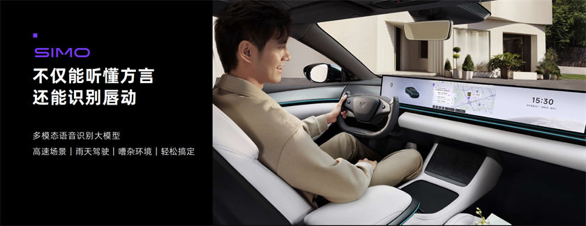 融合多模态大模型的SIMO 2.0实现了行业唯一唇动识别功能。通过融合识别用户唇动轨迹,将嘈杂环境下的语音识别准确率提升到90%。同时,SIMO 2.0还升级方言识别能力,支持多种方言对话,在多指令同时识别、多音区群聊、车内/车外全场景语音指令等功能的加持下,为用户打造出极具未来感的沉浸式智能座舱。