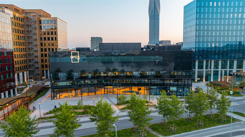 这一创新中心的设计融合了中国五行元素与瑞典水晶制作技艺的文化遗产。园区中6座建筑的外立面由不同颜色的玻璃幕墙覆盖,分别代表中国五行中的“金、木、水、火、土”元素。凭借独特设计,Uni3曾获2021年红点设计大奖等荣誉。园区内聚集了吉利瑞典研发中心、吉利瑞典全球设计中心等吉利相关企业,以及包括丰田在内的100多家企业,形成了完善的产业生态。