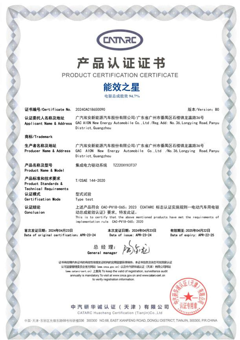 广汽夸克电驱2.0非晶-碳纤维电驱荣获中汽研首批“Premium高品质电驱”认证