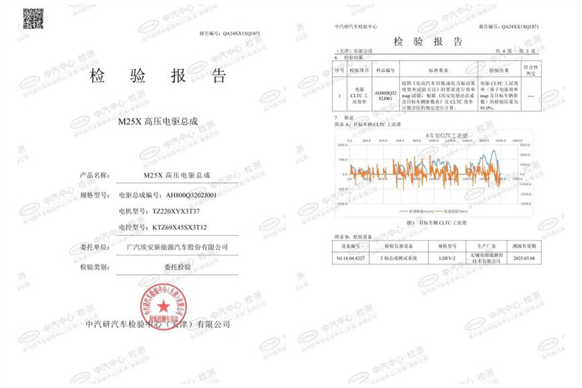 广汽夸克电驱2.0非晶-碳纤维电驱经中汽研检测电驱系统CLTC工况效率高达93%