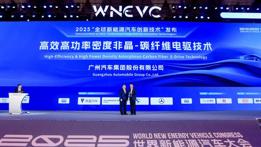 2025年9月27日-29日,由中国科协、海南省人民政府、科学技术部、工业和信息化部共同主办的“第七届世界新能源汽车大会(WNEVC)”在海南海口举行。大会期间,备受瞩目的“全球新能源汽车前沿及创新技术”评选结果揭晓,广汽集团自主研发的夸克电驱2.0凭借非晶-碳纤维电驱技术,以行业第一的高效率、高功率密度荣膺动力系统领域唯一“全球新能源汽车创新技术奖”,彰显广汽在新能源核心技术领域的全球领先实力。