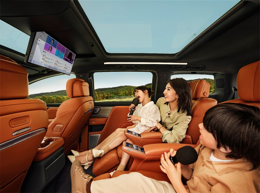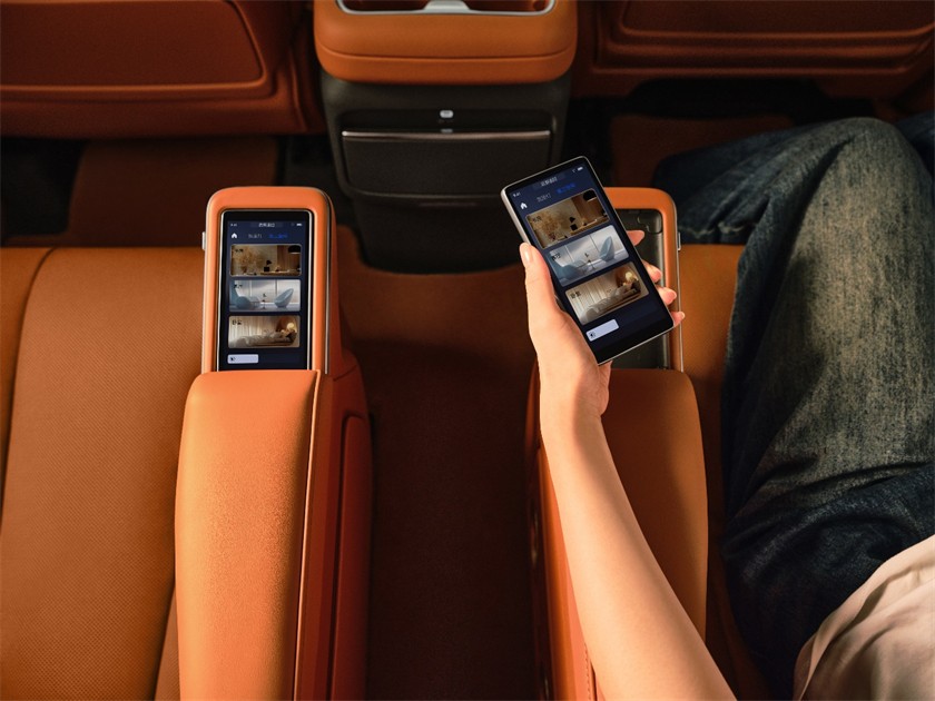 至境世家拥有行业领先的8屏数字空间。其中,50吋全景AR-HUD抬头显示在清晰度、亮度、色彩表现等方面都达到业界顶尖水平,完美融合15组以上驾驶信息与真实道路场景。世家座舱配备10.25吋仪表屏、16.3吋中控屏、16.3吋副驾屏和21吋4K后舱多媒体智慧屏,均可显示200PPI视网膜级细腻画面,并通过莱茵TUV低蓝光护眼认证,保障家人,尤其是老人和孩子的视力健康;除仪表屏外,其他三块娱乐屏幕皆支持高精度触控和多屏互动,中控、副驾屏可以协助后排播放内容,既可以多屏同看,也可以各自独享;娱乐屏还支持蓝牙麦克风,以及有线/蓝牙连接SWITCH、游戏手柄,配合超高清3D渲染效果,以及Bose悦享音响系统的震撼声场,无论是高清流畅的院线大片,还是沉浸式的3A游戏大作,都能身临其境般的完美呈现。二排同级唯一配备两个5.5吋智慧移动管家屏,可控制二排座椅、空调、冰箱,支持小憩模式,舒适功能一屏掌控,各种需求一键可达。