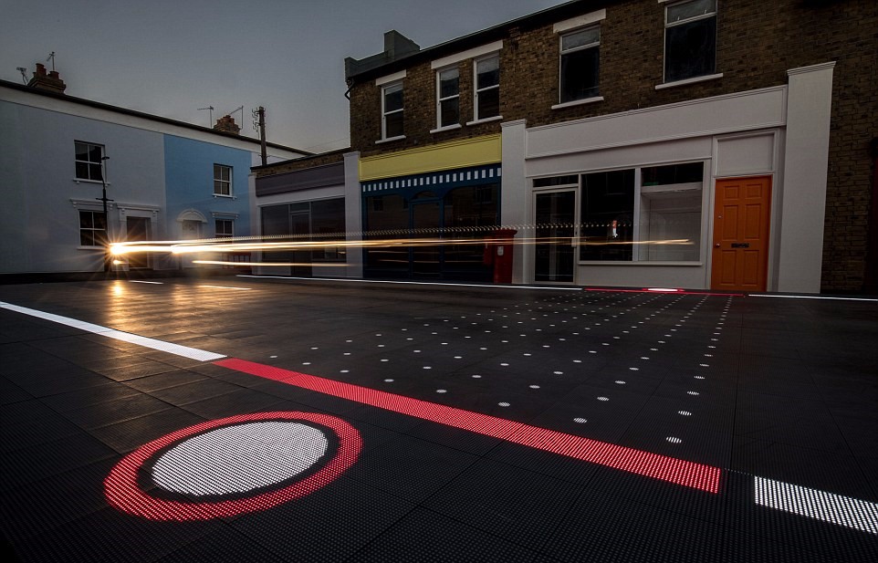 系统会根据摄像头反馈信息处理道路发生情况,并触发路面上铺设的LED面板,为行人交叉提供安全的场所,并且向其他道路使用者发出警告。