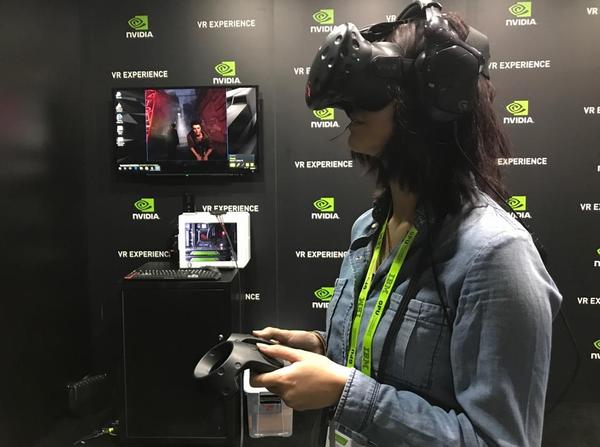 VR Village区域,NVIDIA采用HTC Vive基于NVIDIA GPU的硬件平台,展示了多个Demo,包括游乐园小游戏主题、室内建筑漫游以及蝙蝠侠主题。搜狐科技体验了多个主题,其中和华纳兄弟集团、漫威集团联合开发的蝙蝠侠主题最为精彩,前后景对比明显,画质直逼3D大片,内容上有剧情也有动作,沉浸感极强。