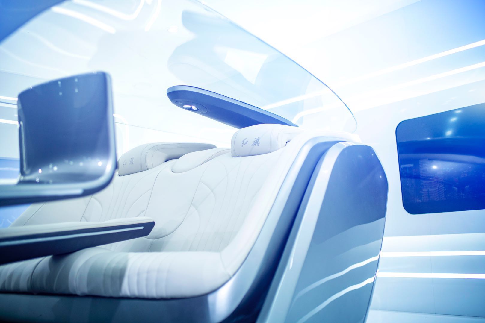 这是一款呈现红旗进取风格的概念设计,未来感并没有淹没它对乘坐者对舒适、放松需求有重视。